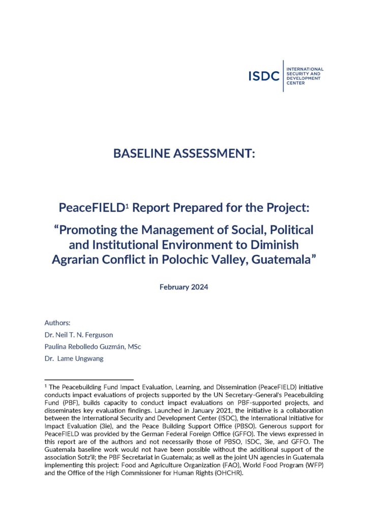 This report outlines the research and analysis conducted as part of the baseline study for the project titled “Promoting the Management of Social, Political, and Institutional Environment to Diminish Agrarian Conflict in Polochic Valley, Guatemala.” Funded by the United Nations Peacebuilding Fund (PBF), the project is implemented by a consortium of UN agencies, including the Food and Agriculture Organization (FAO), the World Food Programme (WFP), and the Office of the High Commissioner for Human Rights (OHCHR). Though initially approved to run for 24 months, starting in November 2021; a no-cost extension was granted, such that the full completion of a project activities is envisioned for May 2024.