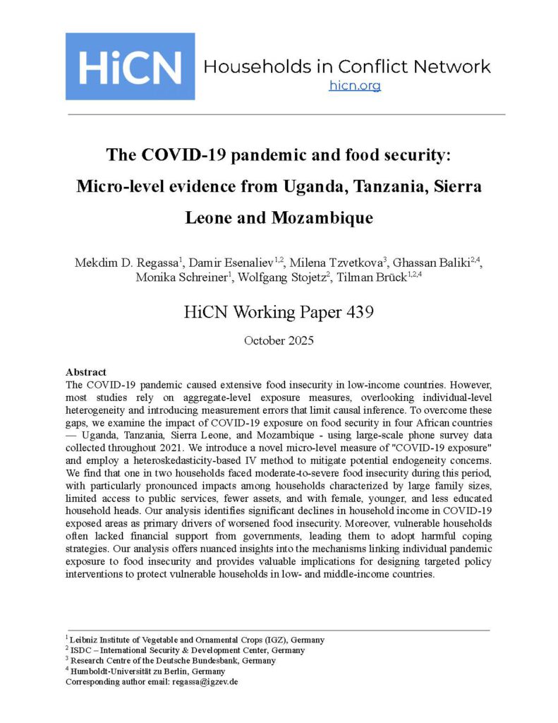 The COVID-19 pandemic caused extensive food insecurity in low-income countries. However, most studies rely on aggregate-level exposure measures, overlooking individual-level heterogeneity and introducing measurement errors that limit causal inference. To overcome these gaps, we examine the impact of COVID-19 exposure on food security in four African countries — Uganda, Tanzania, Sierra Leone, and Mozambique – using large-scale phone survey data collected throughout 2021. We introduce a novel micro-level measure of “COVID-19 exposure” and employ a heteroskedasticity-based IV method to mitigate potential endogeneity concerns. We find that one in two households faced moderate-to-severe food insecurity during this period, with particularly pronounced impacts among households characterized by large family sizes, limited access to public services, fewer assets, and with female, younger, and less educated household heads. Our analysis identifies significant declines in household income in COVID-19 exposed areas as primary drivers of worsened food insecurity. Moreover, vulnerable households often lacked financial support from governments, leading them to adopt harmful coping strategies. Our analysis offers nuanced insights into the mechanisms linking individual pandemic exposure to food insecurity and provides valuable implications for designing targeted policy interventions to protect vulnerable households in low- and middle-income countries.